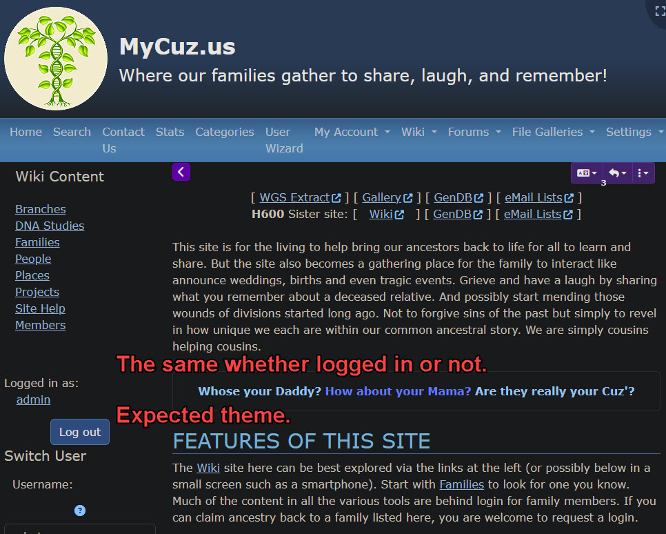 (c) Contact-Us and a number of Admin pages switches to some theme that is not readable / usable when in dark mode on the browser. The current list of pages is:
