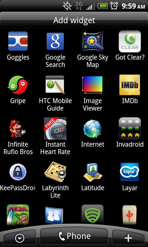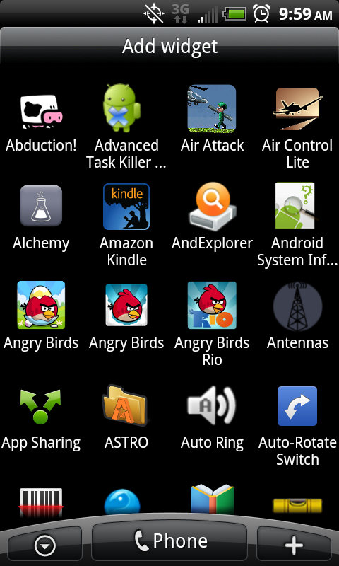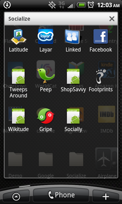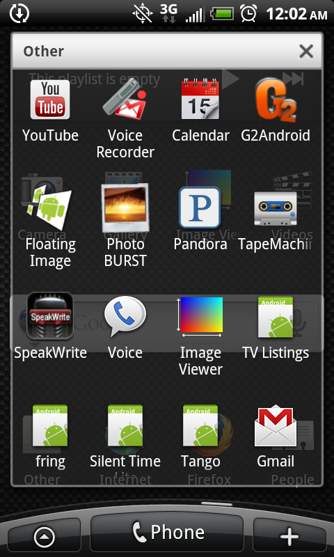 Randy's launcher screen shots and Application list before upgrading and repair of phone to fix Camera Flash LED's. No custom theme-ing. Just pure functional customization to maximize battery and utility.