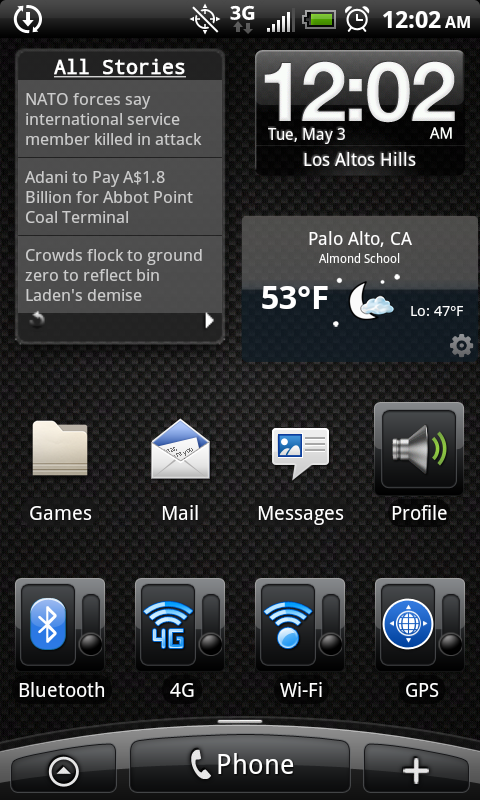 Randy's launcher screen shots and Application list before upgrading and repair of phone to fix Camera Flash LED's. No custom theme-ing. Just pure functional customization to maximize battery and utility.